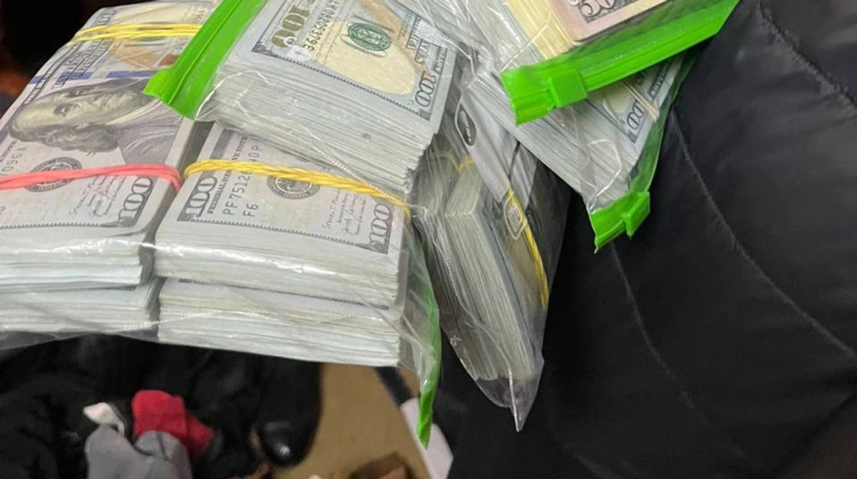 Журналіст Глагола оприлюднив у своєму Telegram фото з пачками доларів. За його даними, наразі правоохоронці знайшли приблизно пів мільйона.